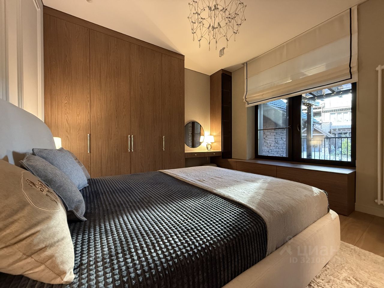 Площадь квартиры составляет 77 кв.м. (62 кв.м квартира и 15 кв.м. терраса), Окна выходят на юго-восток в тихий внутренний двор с видом на хвойные насаждения.
